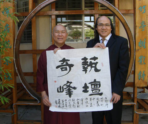 美国佛教上师李雄风为石翔大师题词“艺坛奇峰”