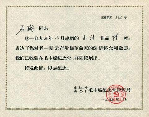 1995年6月石翔大师现代书法六幅作品被毛主席纪念堂收藏