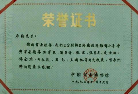 1995年11月石翔现代书法作品被原中央军委主席邓小平、江泽民等领导收藏