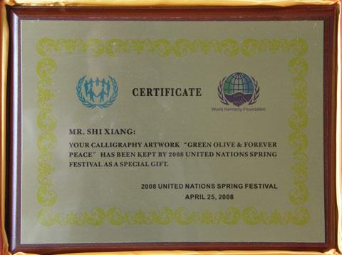 石翔大师作品“和—橄榄长青 和平永恒”被联合国收藏