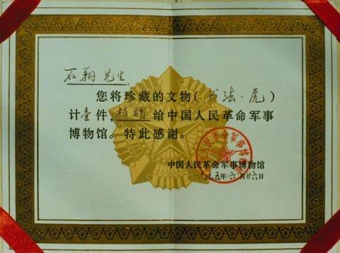 1995年6月石翔大师现代书法作品“虎”被中国人民革命军事博物馆收藏