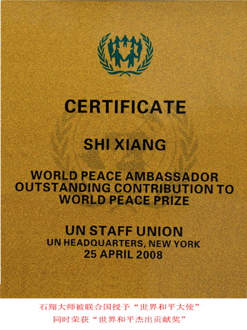 石翔大师被联合国授予“世界和平大使”,同时荣获“世界和平杰出贡献奖”