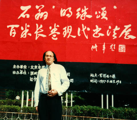 1997年石翔在中国军事博物馆举办“明珠颂”百米长卷现代书法展