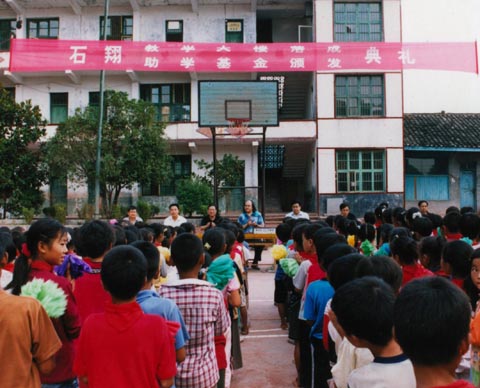 石翔大师为母校颁发助学金